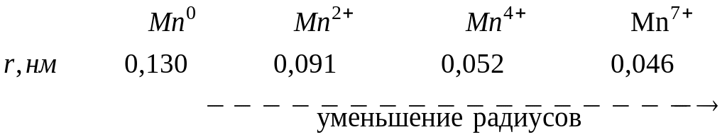 Следовательно, чем больше перекрытие электронных облаков атомов при образовании молекул, тем меньше радиус атома. Аналогичная ситуация наблюдается при изменении степени окисления элементов – радиусы уменьшаются при увеличении степени окисления: