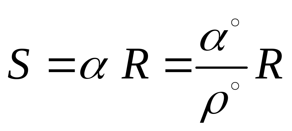 Зв'язок кутової (градусної), радіанної та лінійної міри дуги великого кола встановлюється за формулою