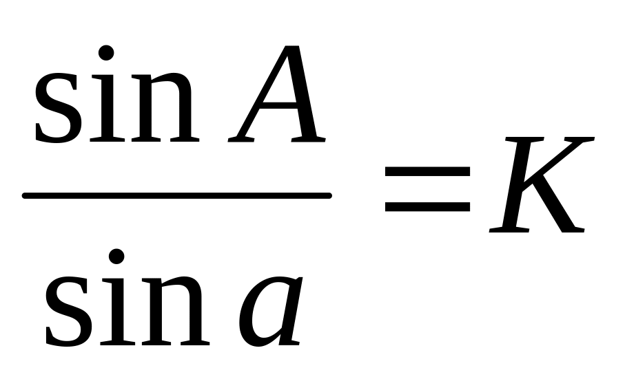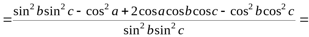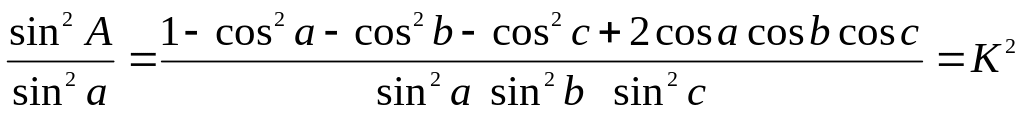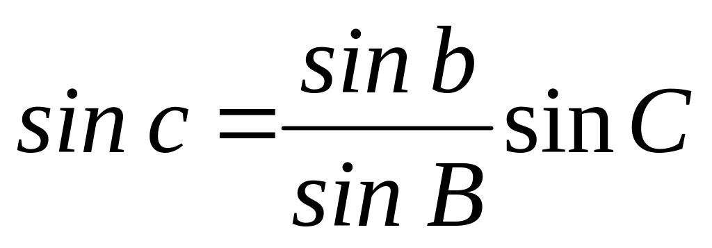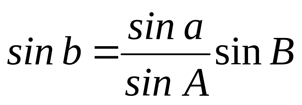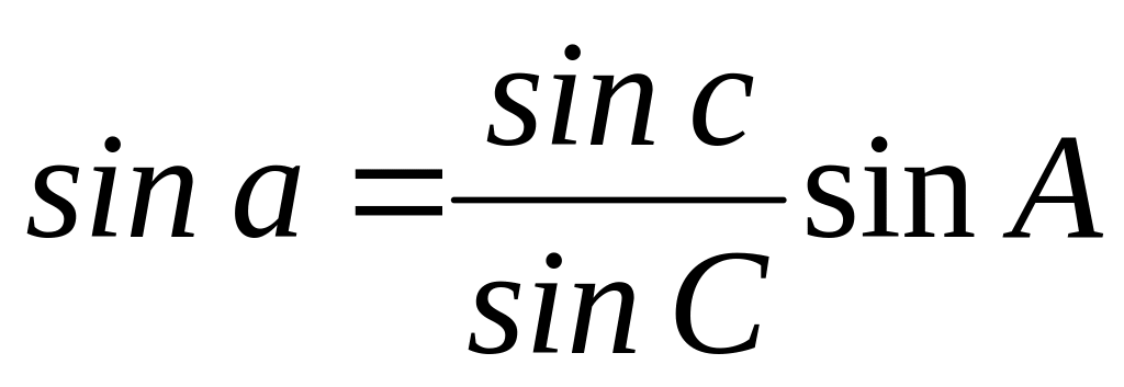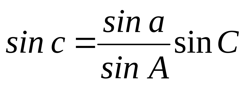 Формули (2.7) однорідні відносно синусів сторін сферичного трикутника. Згідно з теоремою синусів (2.5) зробимо таку заміну у цих формулах: