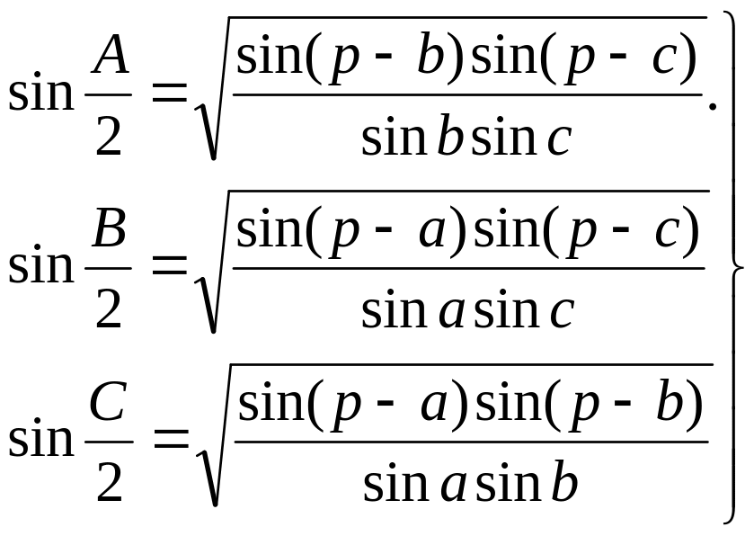 Формули синусів, косинусів і тангенсів половини кута сферичного трикутника