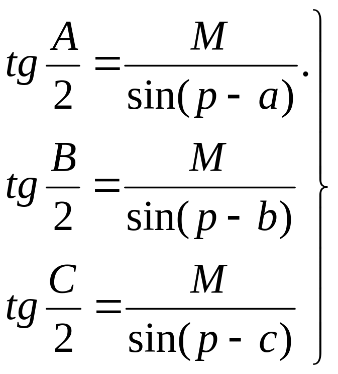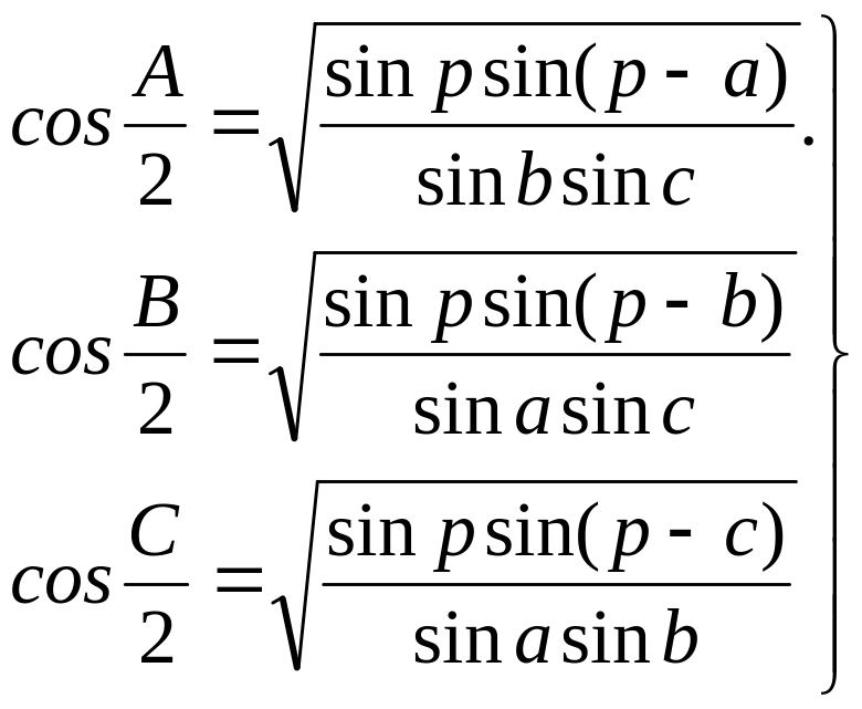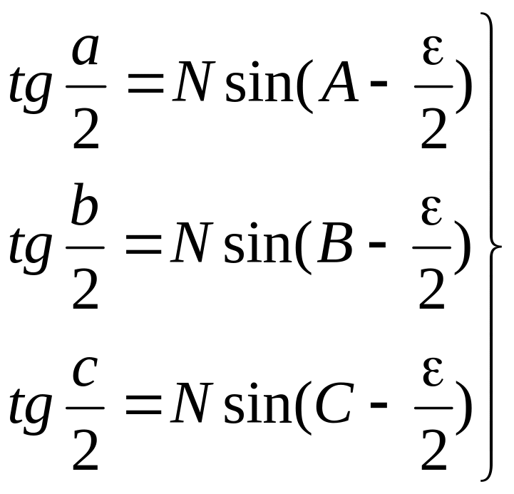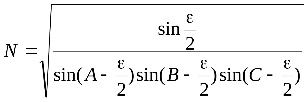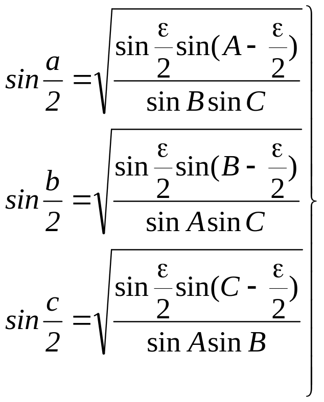 - •Формули синусів, косинусів і тангенсів половини кута сферичного трикутника