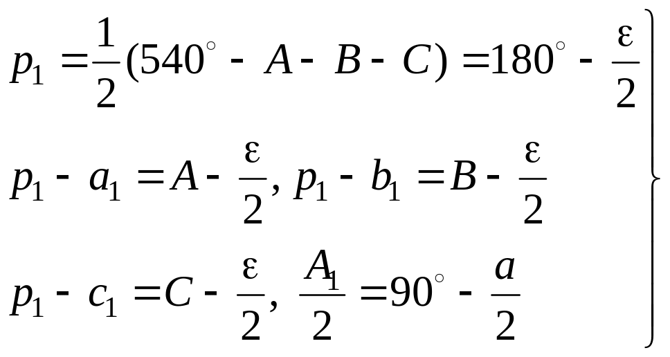 Щоб одержати зазначені формули необхідно співвідношення (4.1) та (4.2) написати для кутів трикутника , що є полярним до даного трикутника .