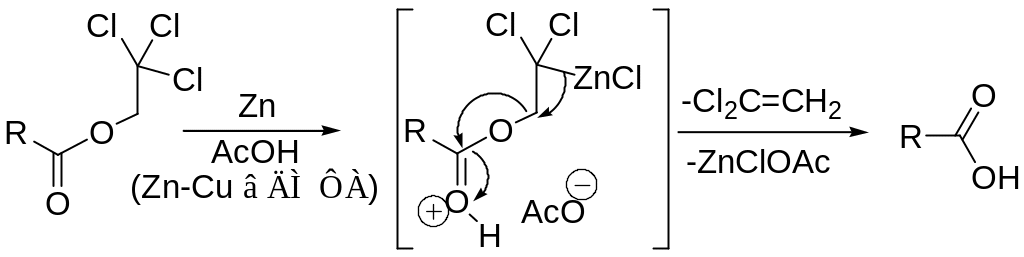 Этот тип снятия защитной группы можно продемонстрировать следующим примером трихлорэтилового эфира.