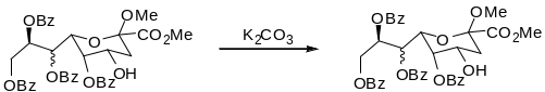 Конечно, когда имеем дело с защищенными сложноэфирными группами полифункциональными соединениями здесь могут возникать проблемы внутримолекулярной переэтерификации, связанной с миграцией ацильных групп на соседние спиртовые. Эта проблема более существенна для бензоатов, чем для ацетатов.