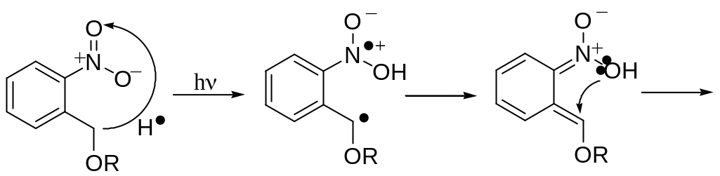 о-Ниторбензиловые эфиры (спирт), о-ниторбензиловые карбаматы (амин), о-ниторбензилкарбонаты (спирт), о-ниторбензиловые сложные эфиры (карбоновые кислоты), о-ниторбензилиденацетали (1,2- и 1,3-диолы).