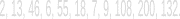 18, 24, 36, 42,16, 54, 40, 48, 74, 28, 8, 12, 56, 64, 38,54,