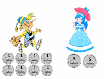 У Буратино 8 монет по 1 рублю, а у Мальвины – 2 монеты по 5 рублей. У кого больше денег?