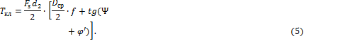 где Т — момент в резьбе; ТT — момент сил трения на опорном торце гайки. Момент в резьбе определяют по формуле