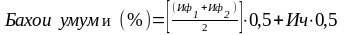 54.Бањои умумии донишљў оид ба азхудкунии барномаи таълимии њар як фан бо формулаи зерин њисоб карда шуда, бо фоиз ифода меёбад: