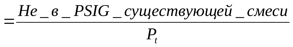 Сущ_He_в_смеси= FHe PSIG / Bar, остающееся в баллоне.