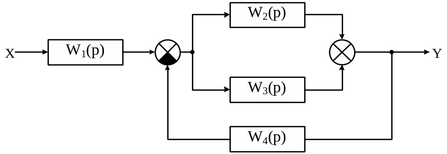 Для приведенной структурной схемы представить передаточную функцию. Описать процесс получения результата.