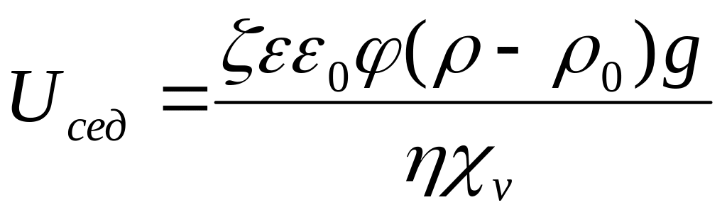22. Рассчитать потенциал седиментации частиц оксида алюминия в водном растворе хлорида калия по следующим данным: =0,1; =81; =5010-3; —0=3103 кг/м3; =110-3Пас; =110-2 Ом-1м-1.