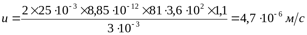 6. Рассчитать скорость электрофореза частиц кварца в воде с учетом электрофоретического торможения по следующим данным: =2510-3 В; E=3,6102 В/м; =81; =110-3Пас; =210-8м; =1,5108 м-1.