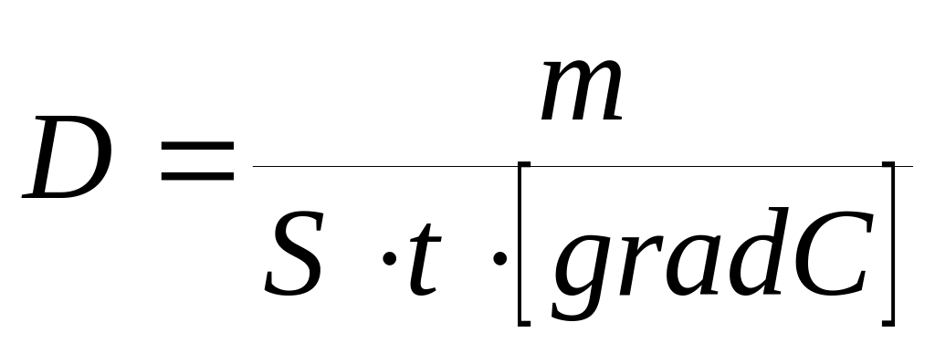 где Δm- масса вещества, S – площадь, Δt- время, grad C – градиент концентрации: