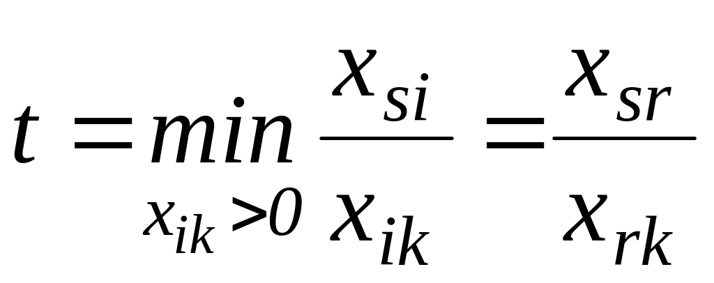 Необхідно вивести з базису вектор Asr; новий базис буде складатися з векторів: As1,As2,…,Asr-1,Asr+1,…,Asm,Ak... У цьому випадку xrk називають розв’язним елементом поточної симплексної таблиці. Стовпець k і рядок r називають також розв’язними.