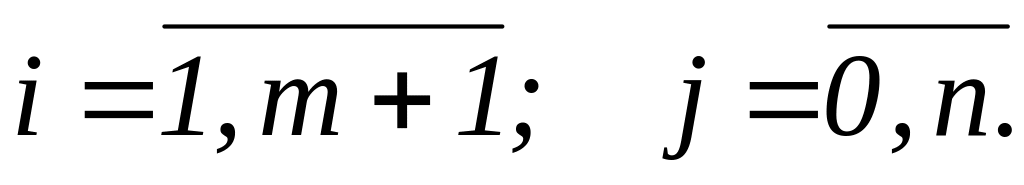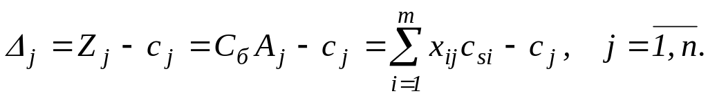 У наступні клітини (m+1)-го рядку записуються значення оцінок векторів обмежень Aj (величини j), що обчислюються за формулою:
