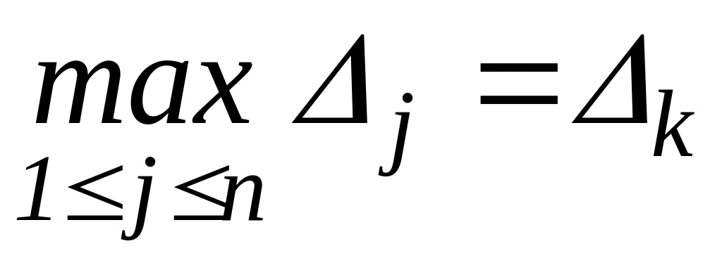 3 Для деяких індексів j є j>0 і для кожного такого j, принаймні, одне з чисел xij>0. Це свідчить про те, що опорний план не є оптимальним і його можна поліпшити за рахунок введення в базис вектора, що відповідає однієї з таких оцінок. У базис необхідно ввести той вектор, якому відповідає maxj. Якщо таких різниць декілька, то беруть вектор з меншим номером.