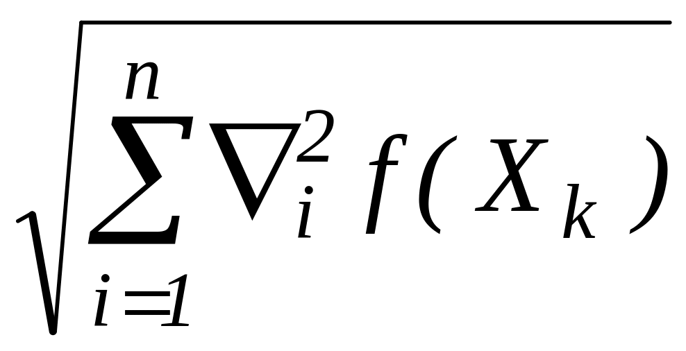 де k – величина оптимального кроку k-ої ітерації, визначається за допомогою одновимірної мінімізації цільової функції уздовж антиградієнтного напрямку; компоненти if(Xk) вектора-градієнта обчислюються в процедурі GRAD;