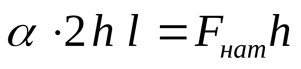 т.е. коэффициент поверхностного натяжения численно равен силе поверхностного натяжения, приходящейся на единицу длины граничной линии на поверхности жидкости. В случае одной поверхности
