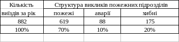 Дана структура викликів пожежних підрозділів за останній рік (таблиця 4.2).
