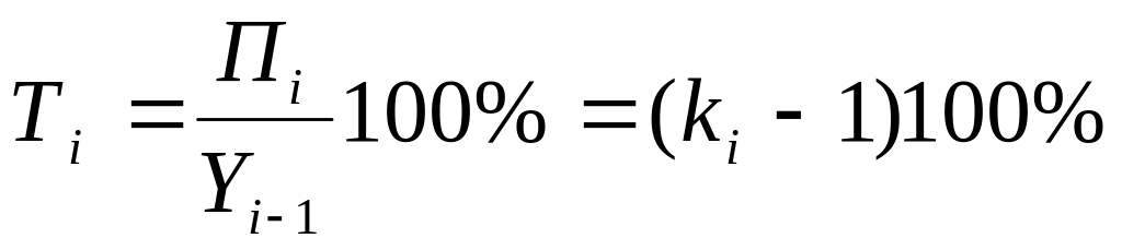 Темп зростання розраховується як відношення рівнів ряду, визначається коефіцієнтом або процентом: