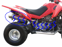 Выхлопная труба и двигатель сильно нагреваются при работе ATV в течение некоторого периода времени. Во избежание травм, не прикасайтесь к этим частям. Когда ATV припаркован, позаботьтесь, чтобы дети или прохожие не касались этих частей, чтобы избежать травм. Для уменьшения риска возникновения пожара не оставляйте ATV около сухих газонов или других легковоспламеняющихся предметов.