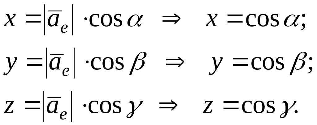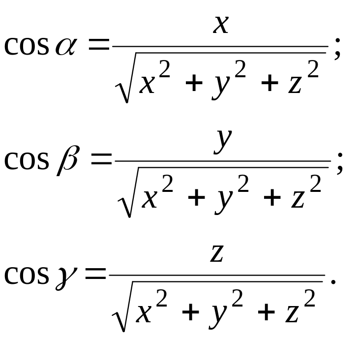 Сравнивая (6) и (7), получим формулы для вычисления направляющих косинусов вектора по его координатам: