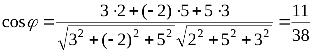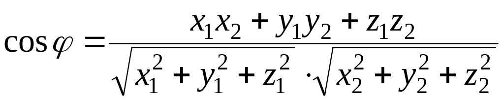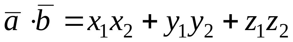 Таким образом, скалярное произведение двух векторов, заданных своими координатами, равно сумме произведений одноименных координат.
