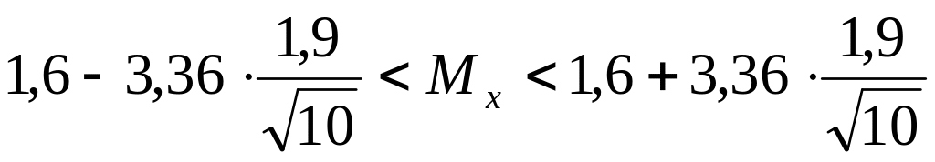 2. Среднее квадратическое отклонение находится в интервале: . Значение q10;0,99=1,08.