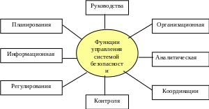 Для того, чтобы раскрыть процесс управления в сфере обеспечения безопасности необходимо рассматривать как минимум восемь функций управления (рис.8.1).