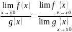 Якщо функції y=f(x) і y=g(х) мають границю в точці Хо то їхня алгебраїчна сума,добуток і частка (при умові що границя знаменника не дорівнює О) також мають границю в цій точці і виконуються рівності :