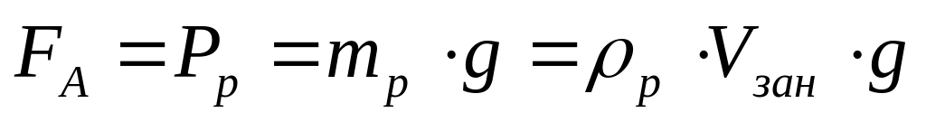 сила Архімеда дорівнює вазі витісненої тілом рідини (газу):