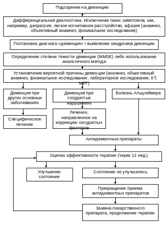 2) Изучить алгоритм диагностики и лечения деменций, разработанный Комиссией Германского медицинского общества по лекарственным средствам (Лукас Г., Мёллер Х.-Ю., 2010).