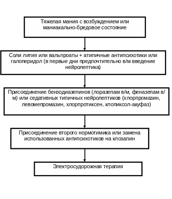 2) Изучить алгоритм терапии тяжелых маниакальных состояний (С.Н. Мосолов, 2008).
