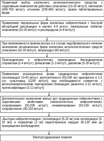 1) Изучить алгоритм лечения возбуждения у психически больных (С.Н. Мосолов, Э.Э. Цукарзи, 2009).