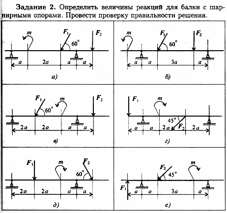 Задание 2. Определить величины реакций в шарнирных опорах балки. Провести проверку правильности решения.
