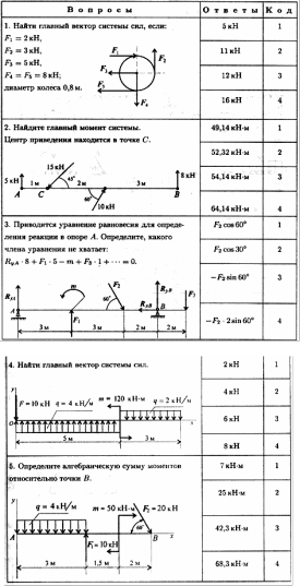 Знать момент силы относительно оси, свойства момента, аналитический способ определения равнодействующей, условия равновесия пространственной системы сил.