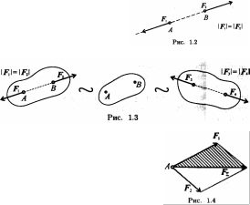 Третья аксиома. Не нарушая механического состояния тела, можно добавить или убрать уравновешенную систему сил (принцип отбрасывания системы сил, эквивалентной нулю) (рис. 1.3).