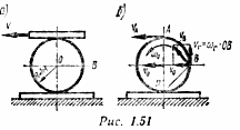 Тогда скорость точки В можно рассматривать как геометрическую сумму скоростей в поступательном (переносном) и во вращательном (относительном) движениях (рис. 1.51, б):