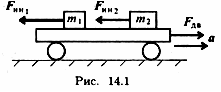 Таким образом, силы, действующие на материальные точки m1 и m2 (рис. 14.1), при разгоне платформы соответственно равны
