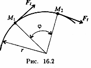 Тело движется по дуге радиуса r из точки М1 в точку M2
