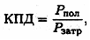 где Рпол — полезная мощность, Вт; Рзахр — затраченная мощность, Вт.
