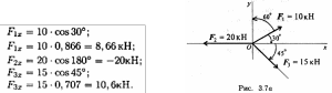 Знак проекции соответствует направлению вниз. Следовательно, равнодействующая направлена влево и вниз (рис. 3.7б).