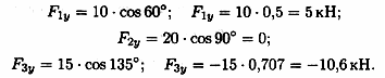 Сложив алгебраически значения проекций, получим величину проекции равнодействующей на ось Оу.