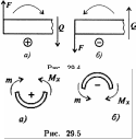 Поперечная сила в сечении считается положительной, если она стремится развернуть сечение по часовой стрелке (рис. 29.4а), если против, — отрицательной (рис. 29.4б).