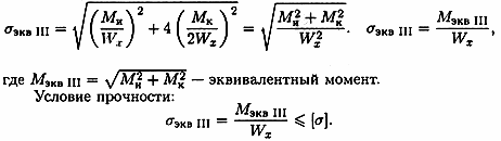 При расчете по третьей теории прочности, теории максимальных касательных напряжений, эквивалентное напряжение рассчитывается по формуле