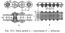 КД — коэффициент динамичности; Кс — коэффициент способа смазывания передачи; KQ — коэффициент наклона передачи к горизонту; Крег — коэффициент способа регулирования; Кр — коэффициент режима нагрузки; Т1 — вращающий момент на ведущей звездочке; [рц] — допускаемое среднее давление в шарнире; т — число рядов цепи; z1 = 29 - 2и — минимальное число зубьев ведущей звездочки роликовой цепи.