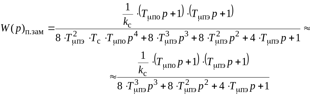 При оптимизации контура положения внутренний замкнутый контур скорости в первом приближении в соответствии с типовой методикой оптимизации [ч. 2] может быть представлен апериодическим звеном