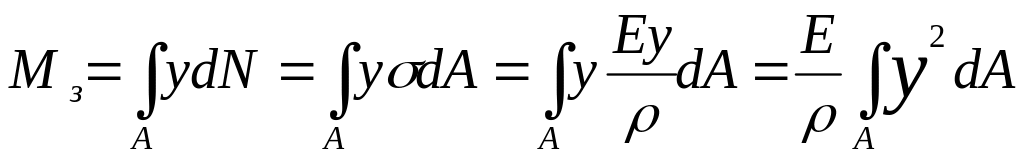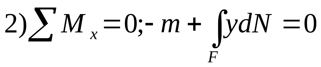 В площині поперечного перерізу відокремимо безмежно малу площадку dA, в межах якої будемо вважати нормальні напруження σ постійними; тоді нормальна сила dΝ, яка діє на площадку dA, буде дорівнювати
