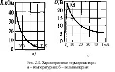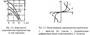 Вследствие нелинейности температурной характеристики вольтамперная характеристика (зависимость между протекающим током и падением напряжения) будет также нелинейной (рис. 2.3, б).